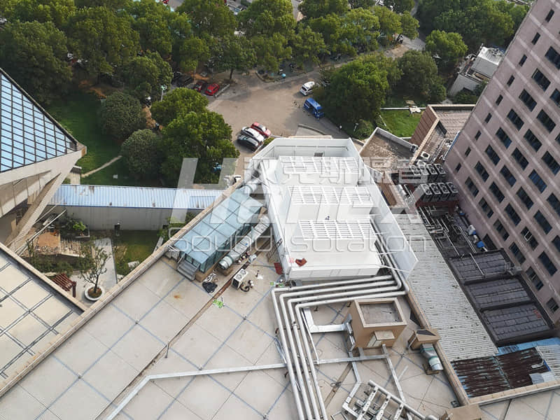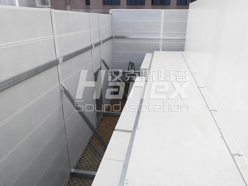 4)安装吸隔声围挡:进一步控制设备噪声,在空调机组压缩机四周设计安装吸隔声围挡,把声能转换为热能消耗掉一部分,同时外层钢板起到隔声效果;