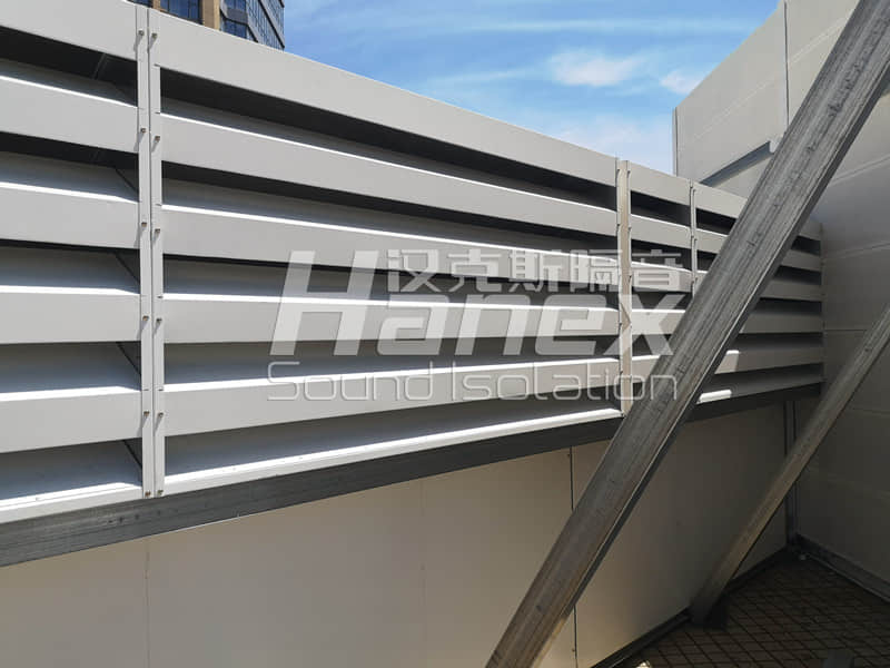2)安装进风消声百叶:为保证3组空调机组进风量需求及罩内设备通风散热,整体隔声罩四周设计安装进风消声百叶;
